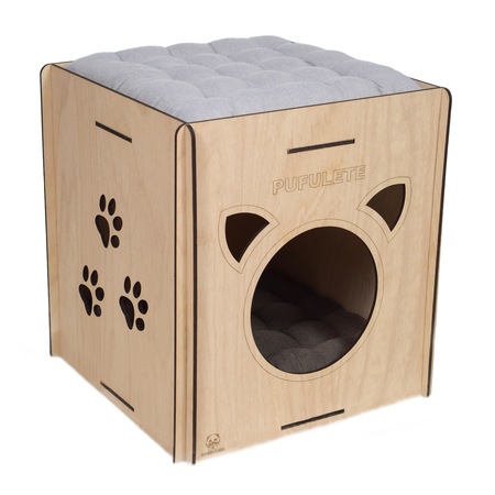 Casuta Taburet Din Lemn Pentru Pisici Bossulica Personalizata Cu