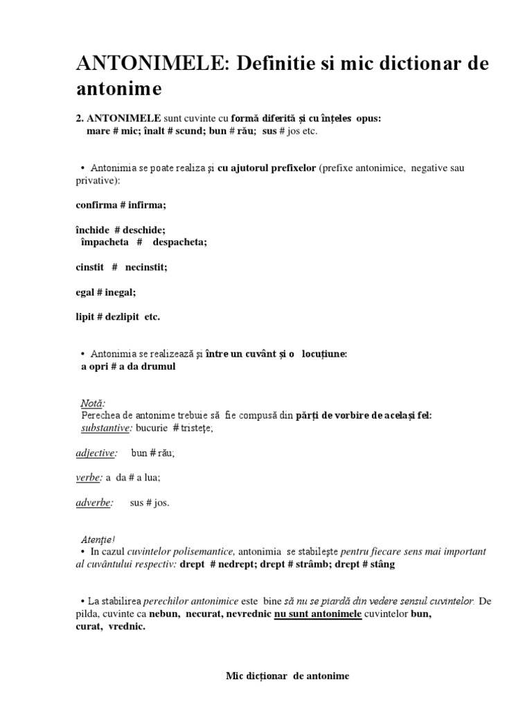 Antonimele Definitie Si Mic Dictionar De Antonime