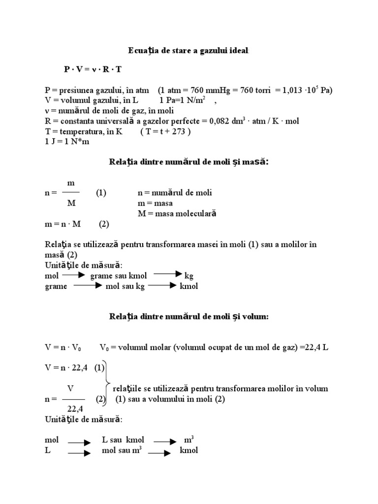 Masa Molară Numărul De Molecule Volumul Molar Chimie
